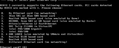 Terminada la configuración del disco nos pedirá el tipo de tarjeta Ethernet: